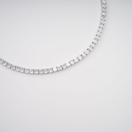 Avril Silver Tone Square Cut Crystal Embellished Necklace