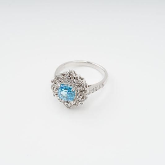 Énigme Blue Cushion Cut Gemstone Sterling Silver Ring