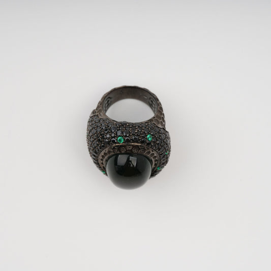 Soupir Black Chunky Oval Band Sterling Silver Ring