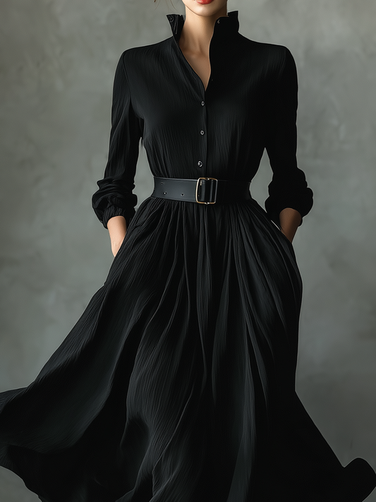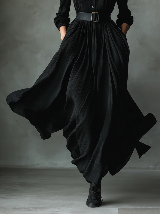 Women's Black Blend Textured Pleated Vintage Maxi Dress