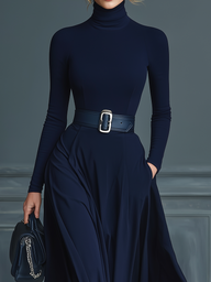 Women's Dark Blue Knitted High-neck Dress MDA2760H6T