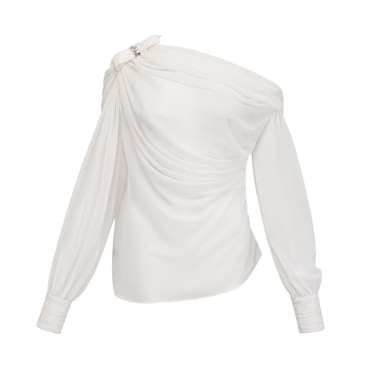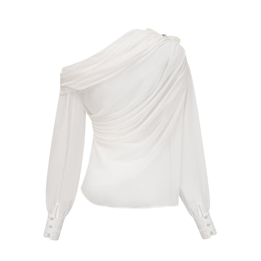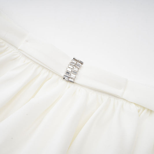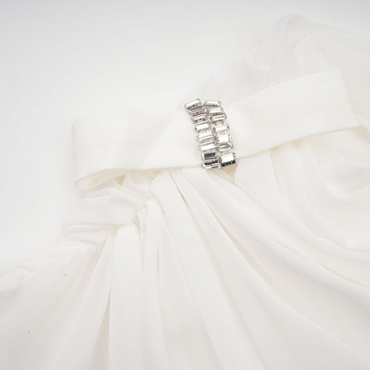 Andrea asymmetrical tulle blouse & skirt matching set in White