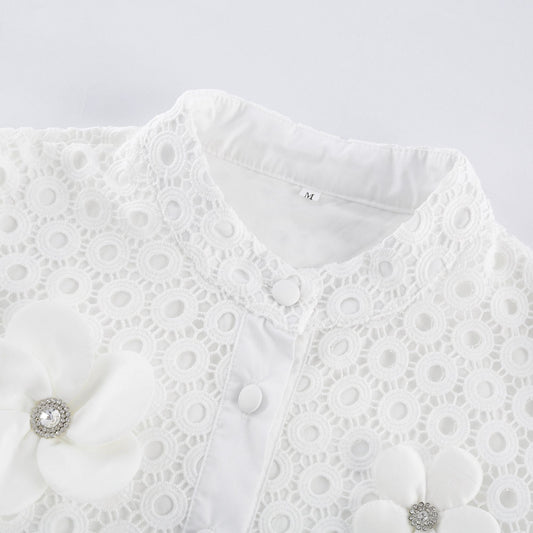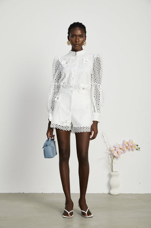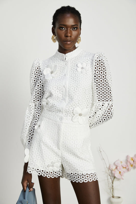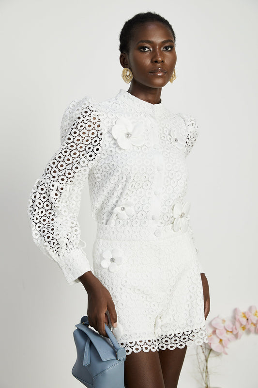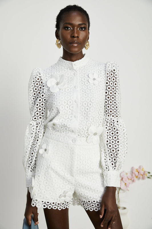 Calla faux-flower cut-out blouse & shorts matching set