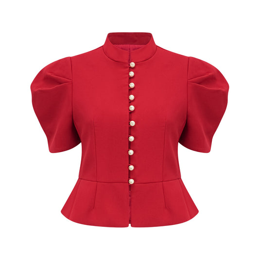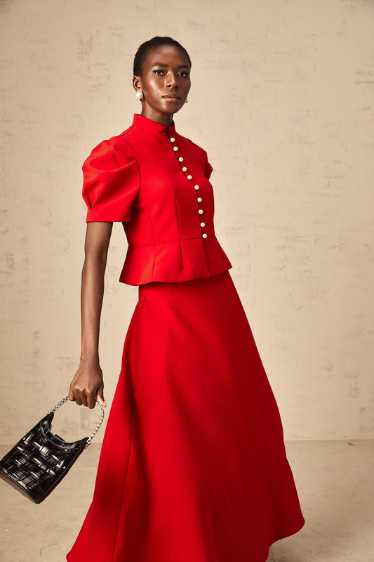 Colette red pleated blouse & skirt matching set