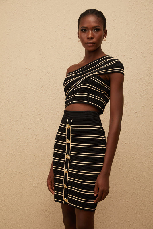 Faustine Black Striped Knit Top & Skirt Set