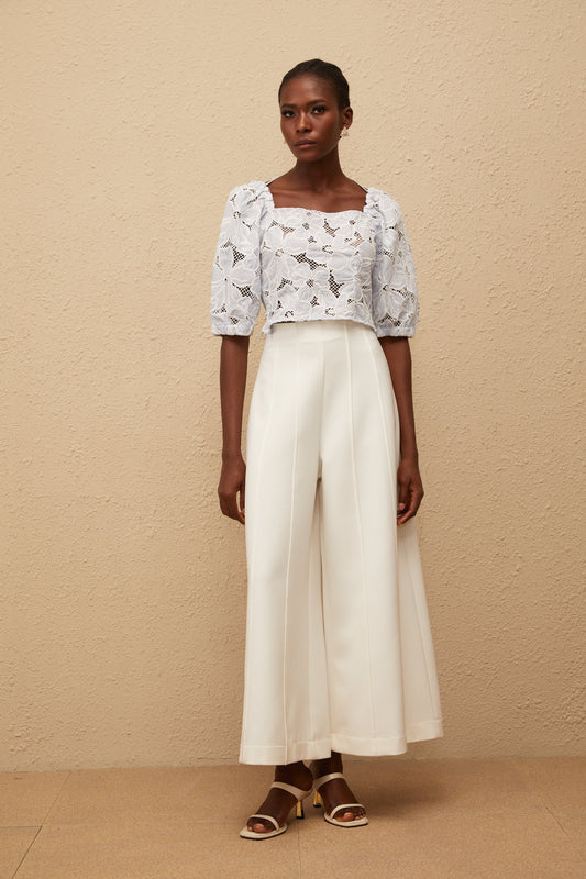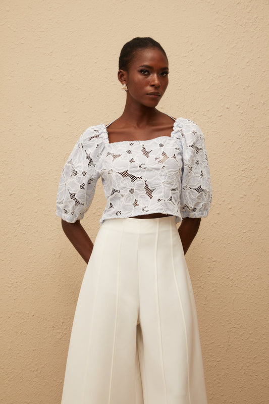 Kirsti Blue Crochet Floral Jacquard Crop Top