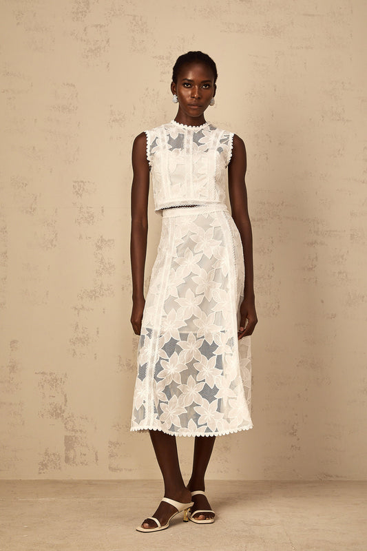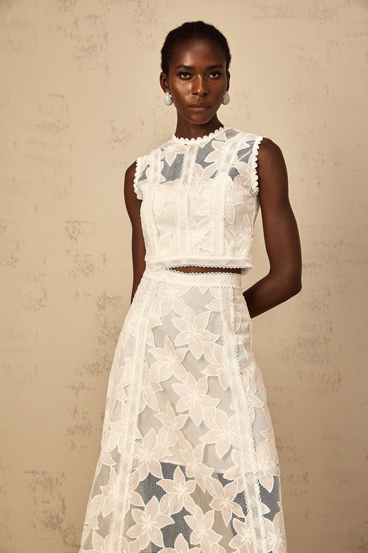 Mailys Floral Embroidered Top & Skirt Set in White