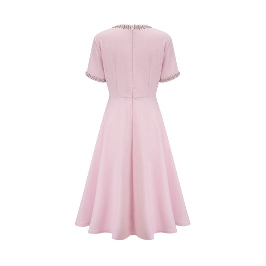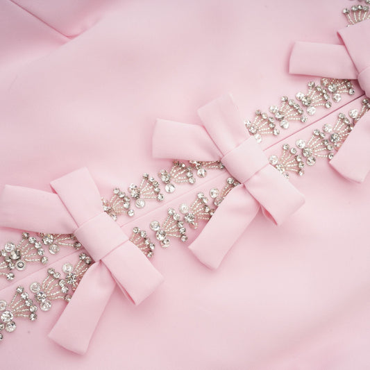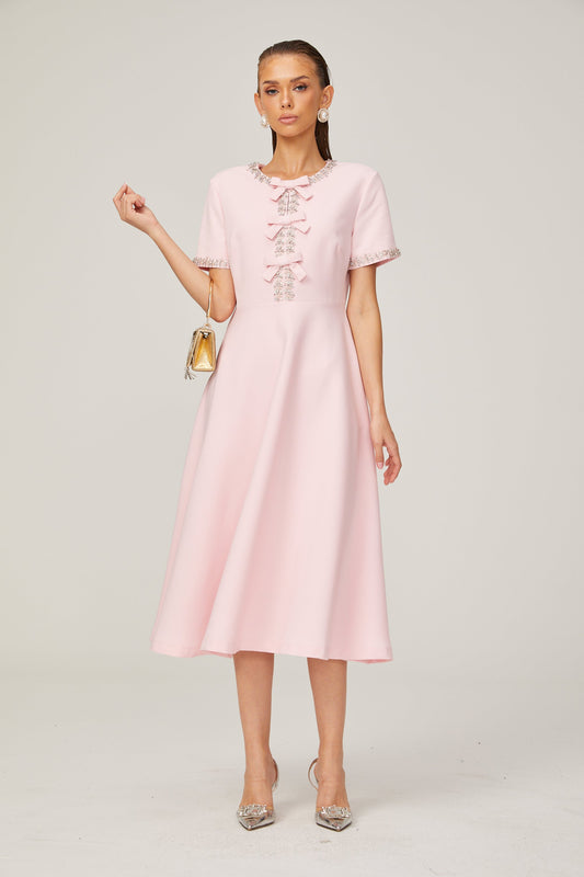 Cassi crystal-accented pink bow midi dress