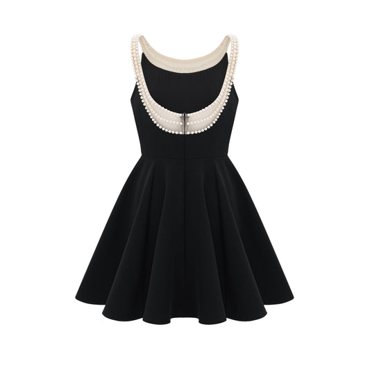 Danaé black faux-pearl-embellished mini dress