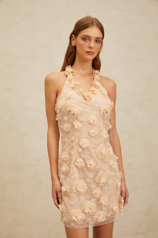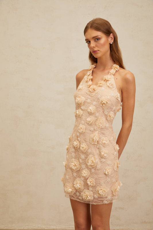 Daphné Neutrals Floral-Appliqué Lace Mini Dress