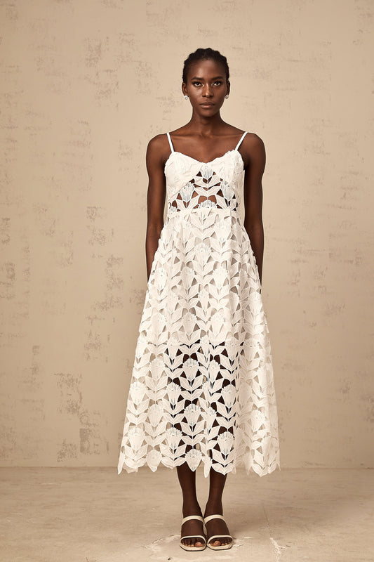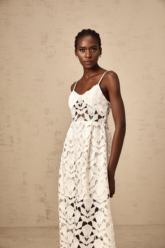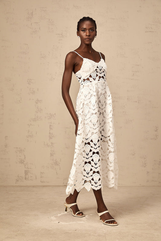 Delphine white cut-out lace midi dress