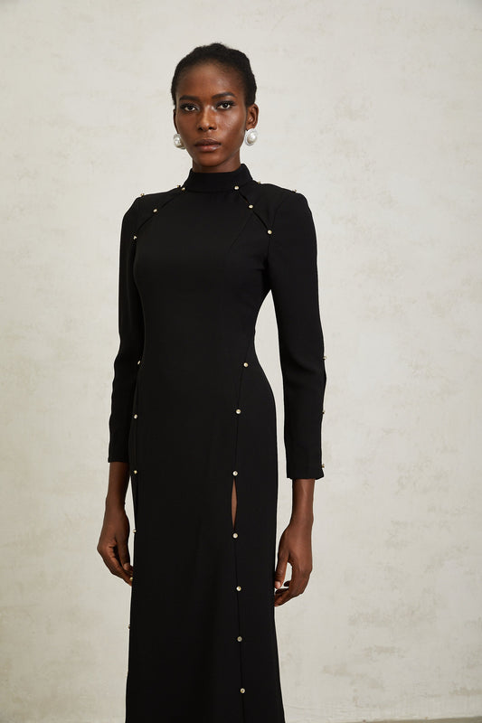 Fátima Black Rhinestone Cut Out Maxi Dress