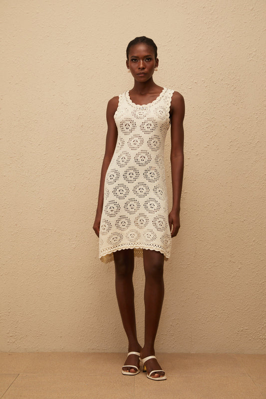 Ismérie White Scalloped Crochet Knit Mini Dress