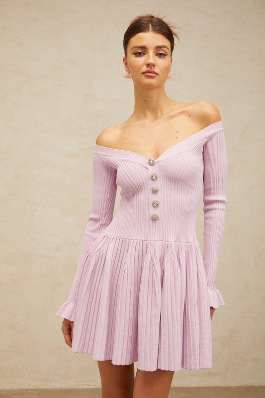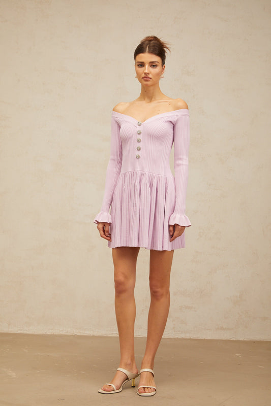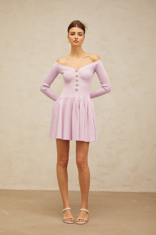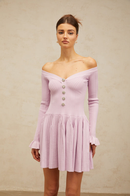 Lyna light-purple off-shoulder ribbed-knit mini dress