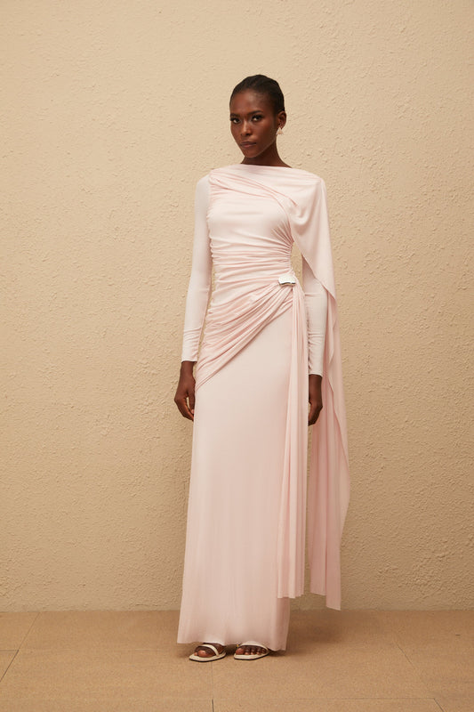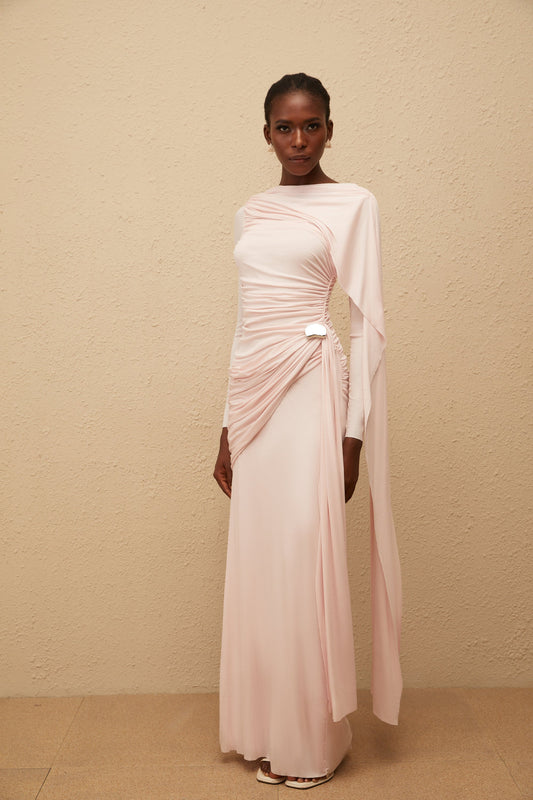 Paloma Pink Asymmetrical Ruched Knit Maxi Dress