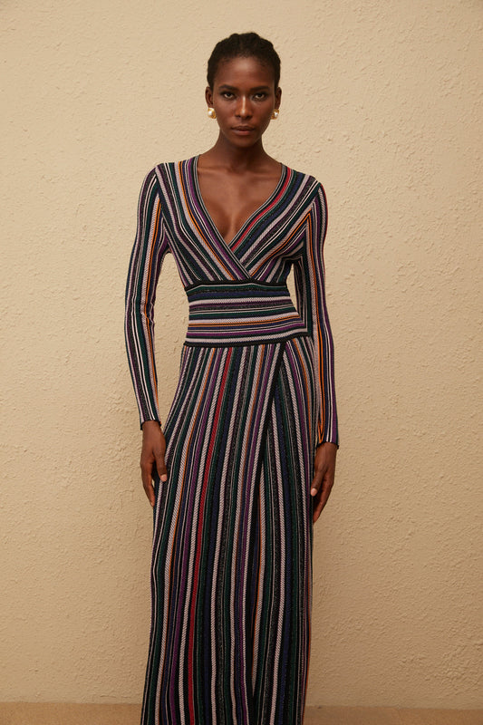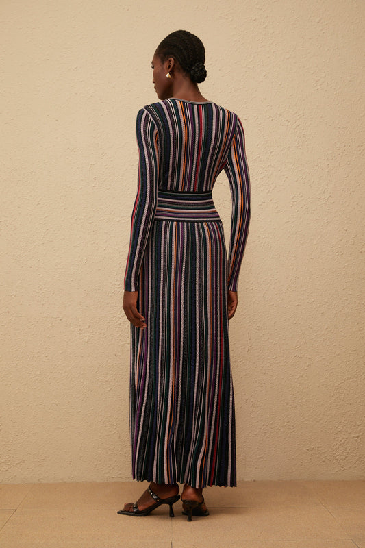 Phoebe Black Vertical Stripe Knit Maxi Dress