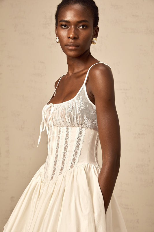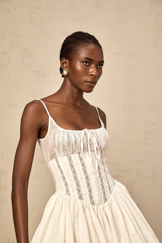 Fleur white lace-detail corset mini dress (US Only)