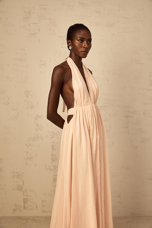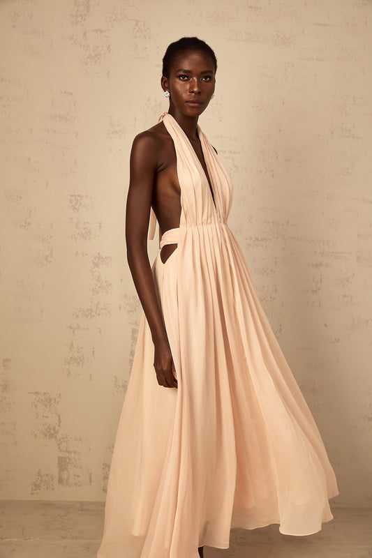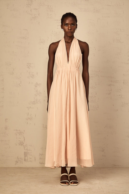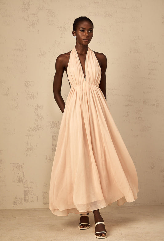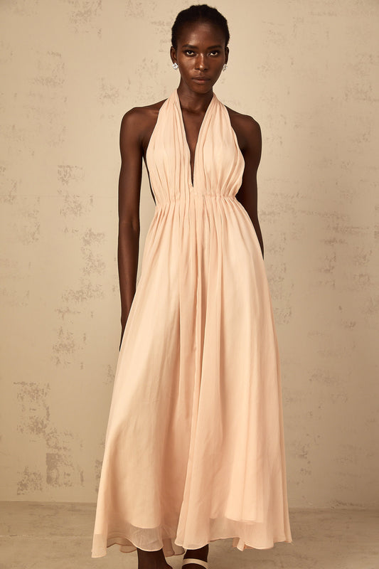 Dulcie Halterneck Shirred Tulle Maxi Dress