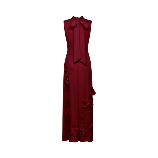 Magali Red Sleeveless Maxi Dress with Faux Flower & Bow-Tie Embellishm