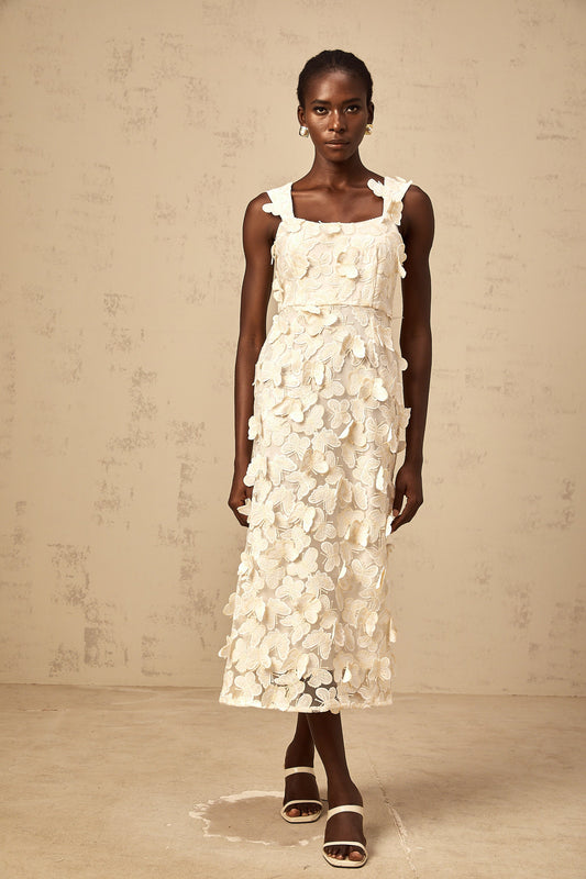 Narcisse butterfly-appliqué flared midi dress