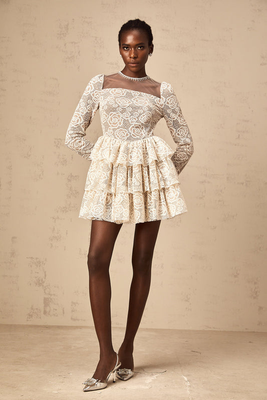 Hippolyte neutrals floral-embroidered mini dress