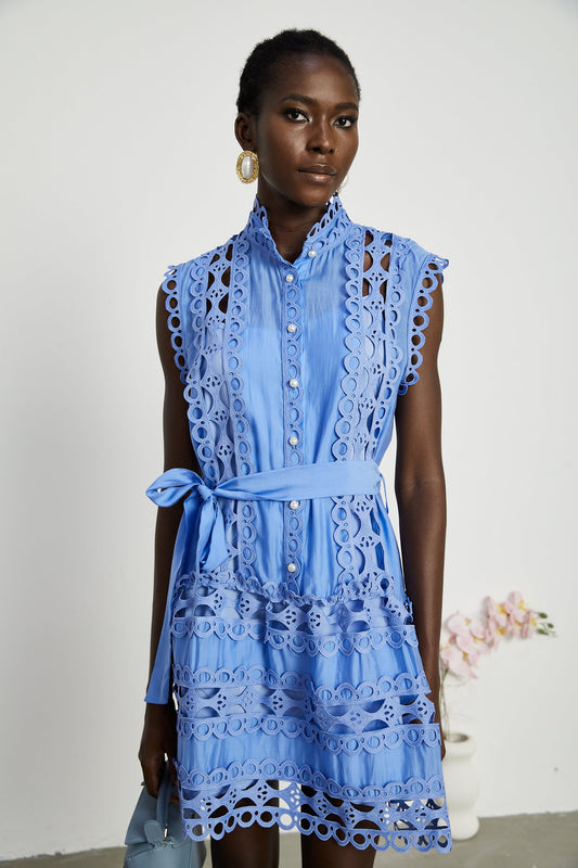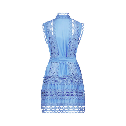 Mireille Blue Cut-out Belted Mini Dress