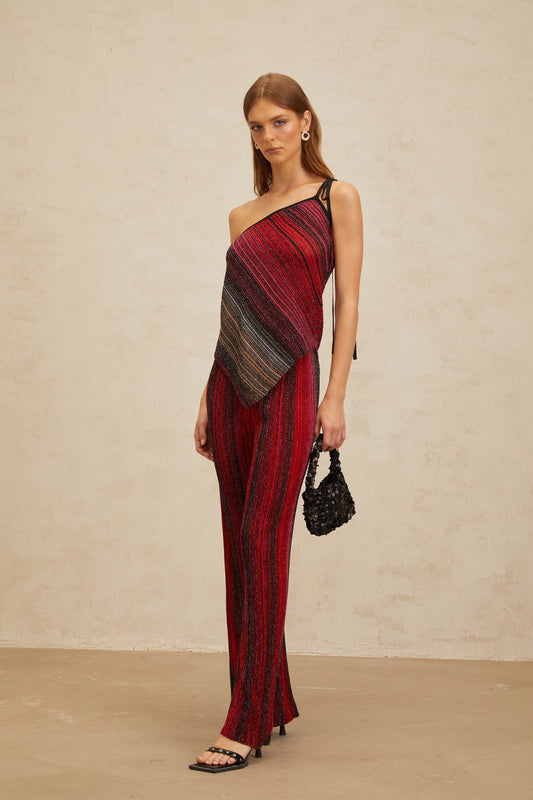 Amaryllis Red Sequin Striped Knit Matching Set