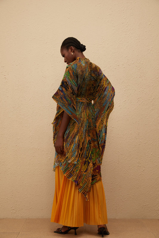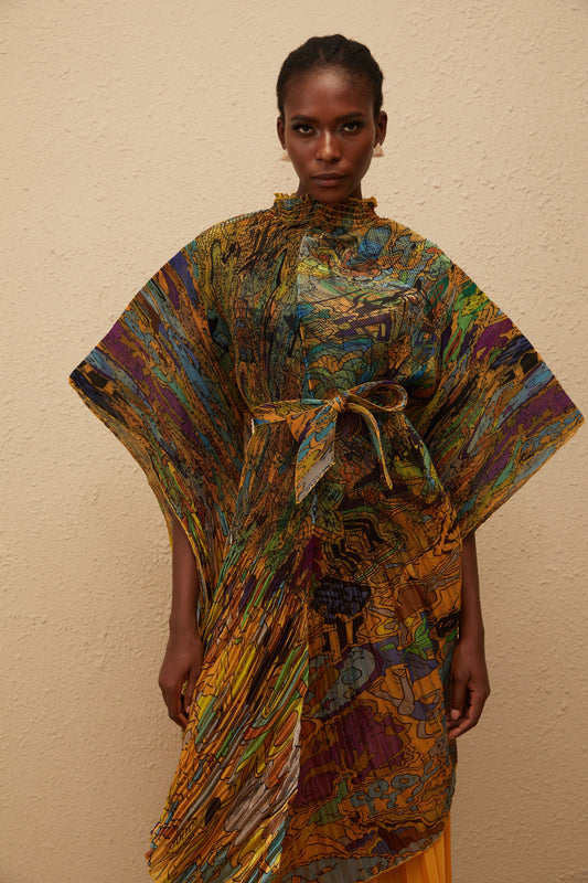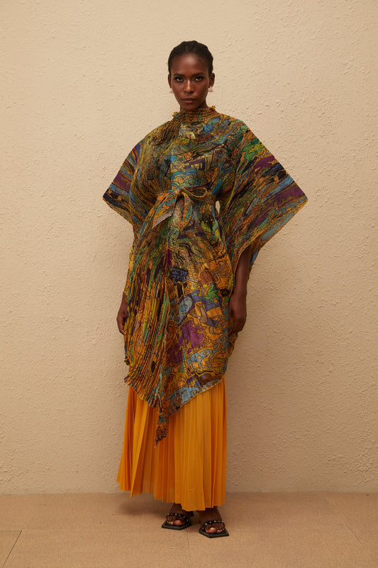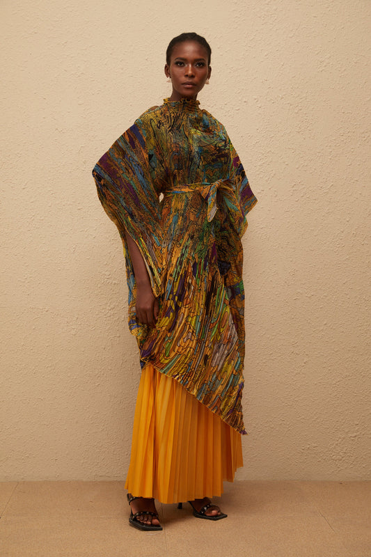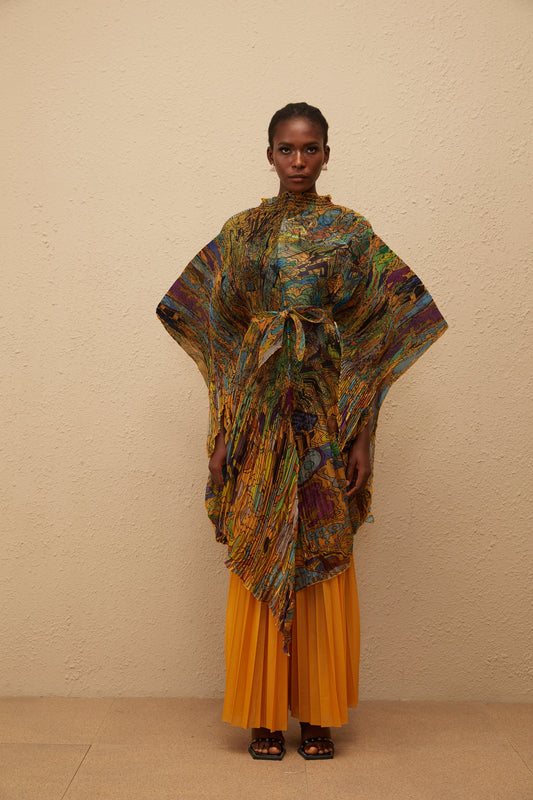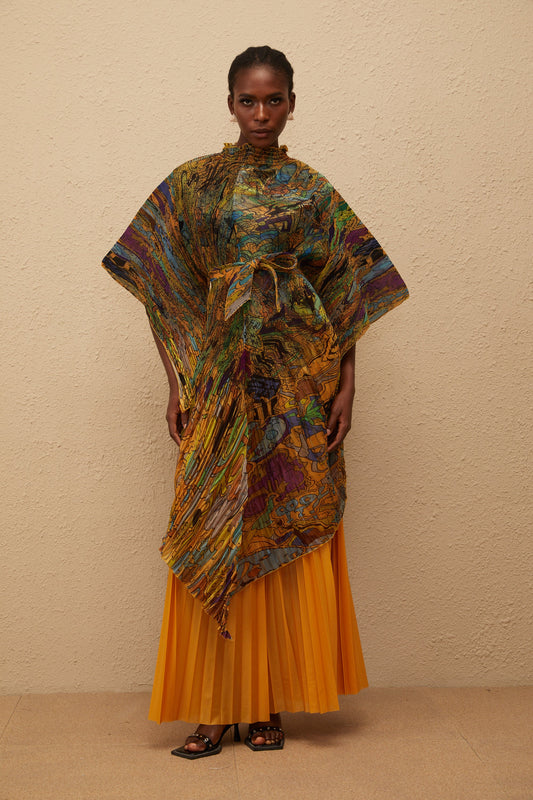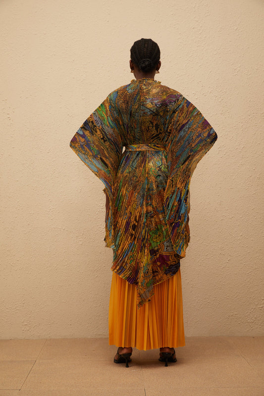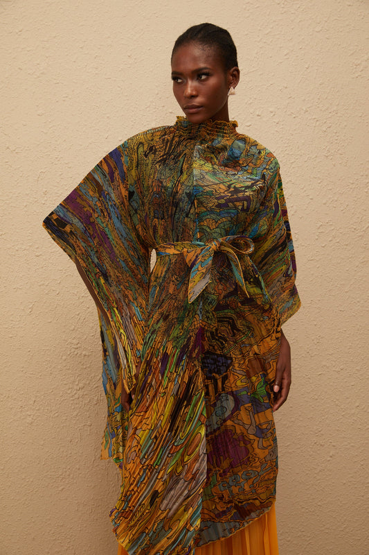 Mélodie Orange Pattern Print Pleated Blouse & Trousers Set