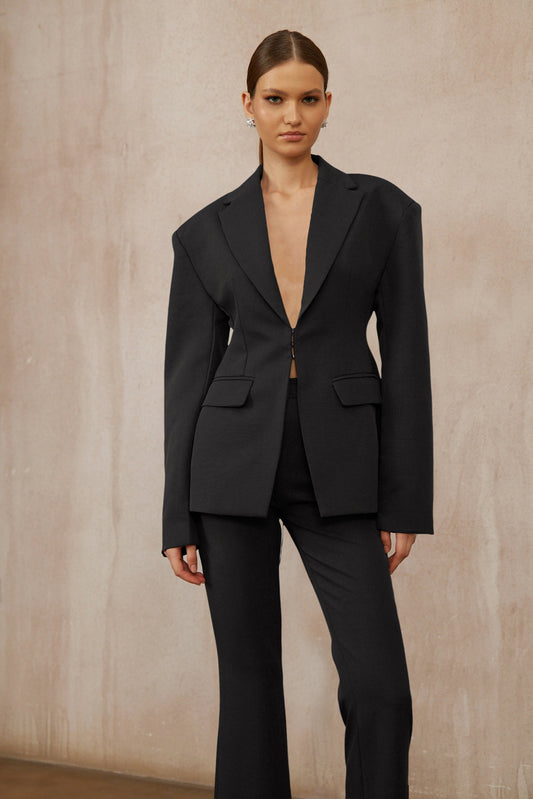 Prunille Black Lace-Up Blazer & Trousers Set