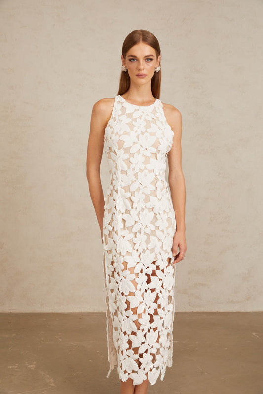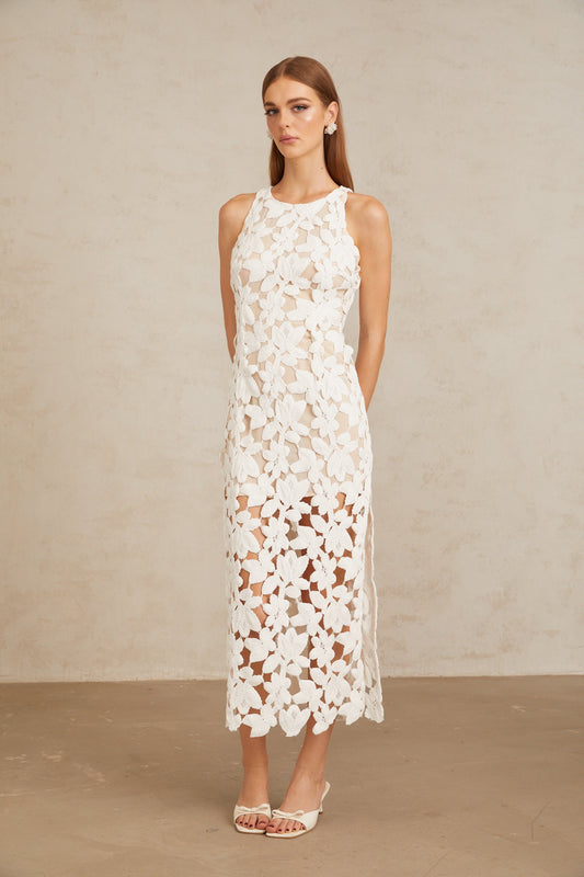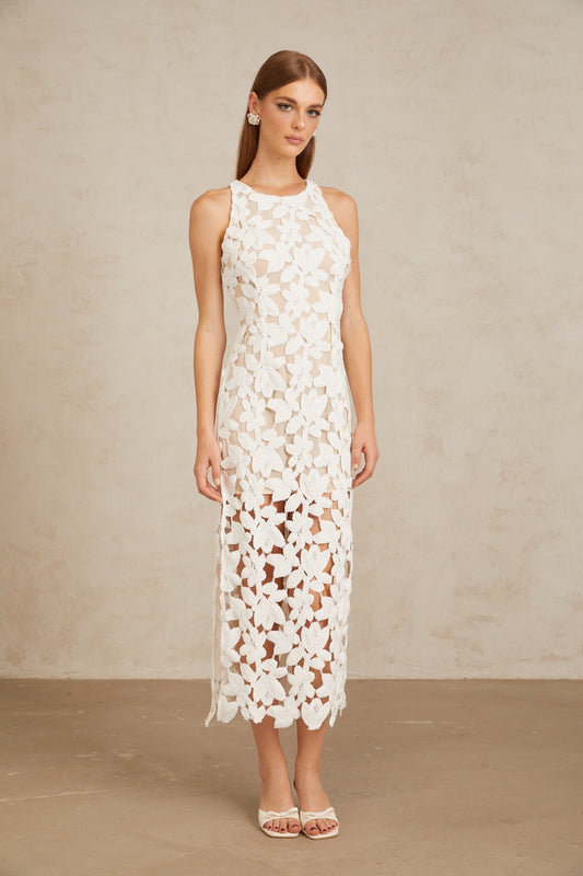Wilhelmine White Cutout Embroidered Floral Midi Dress