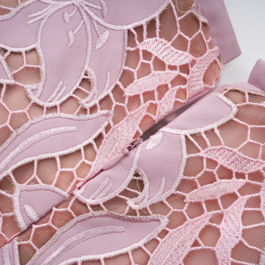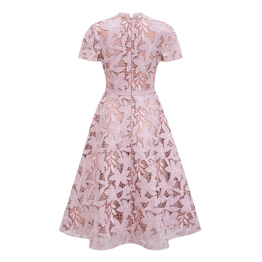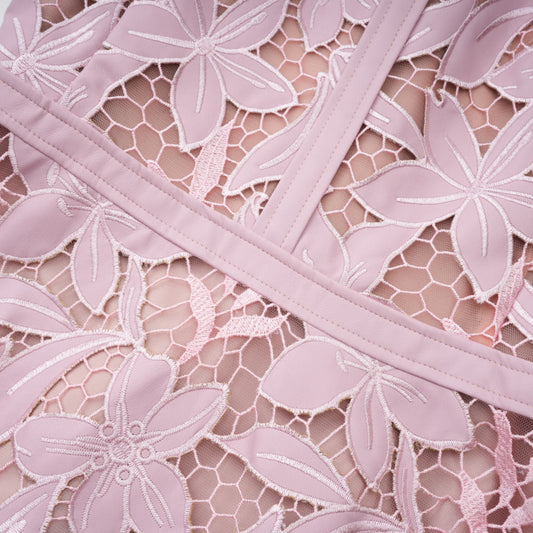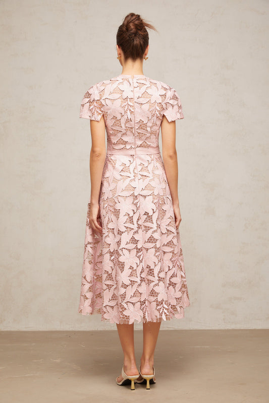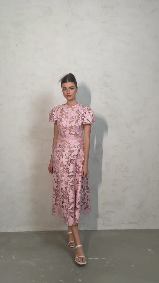 Vérane pink guipure-lace midi dress