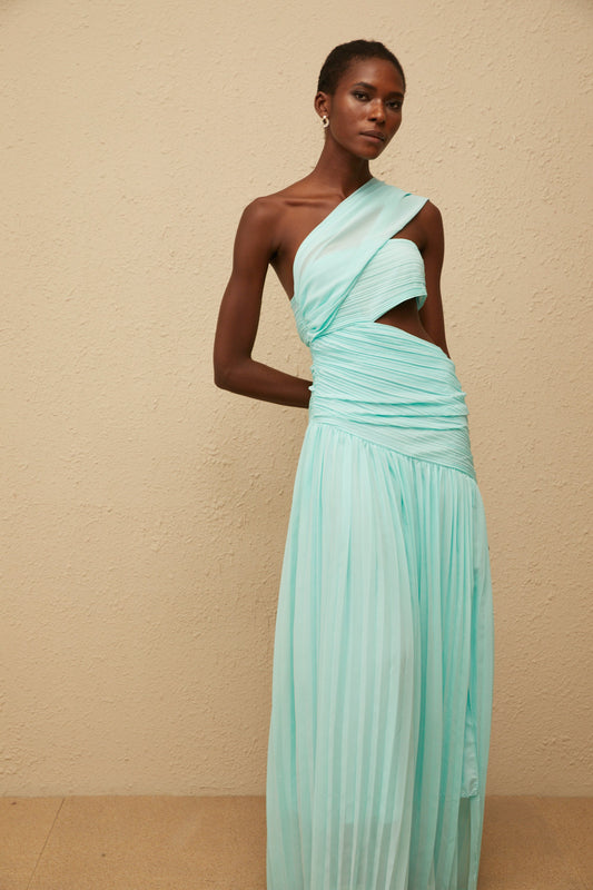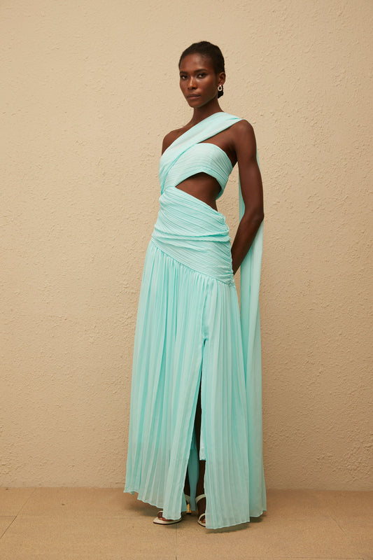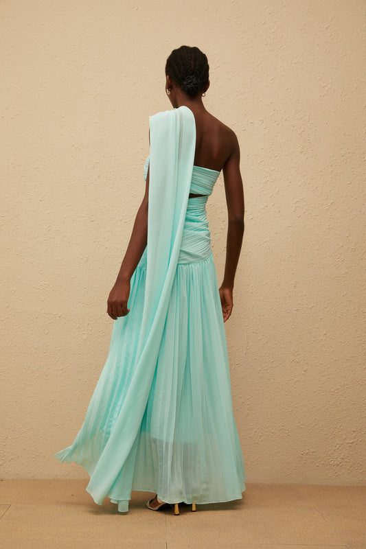 Katerina Mint Green Asymmetrical Pleated Maxi Dress