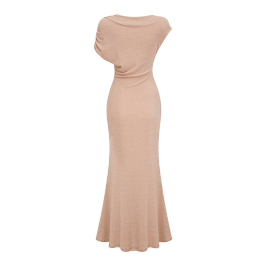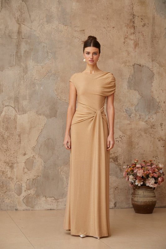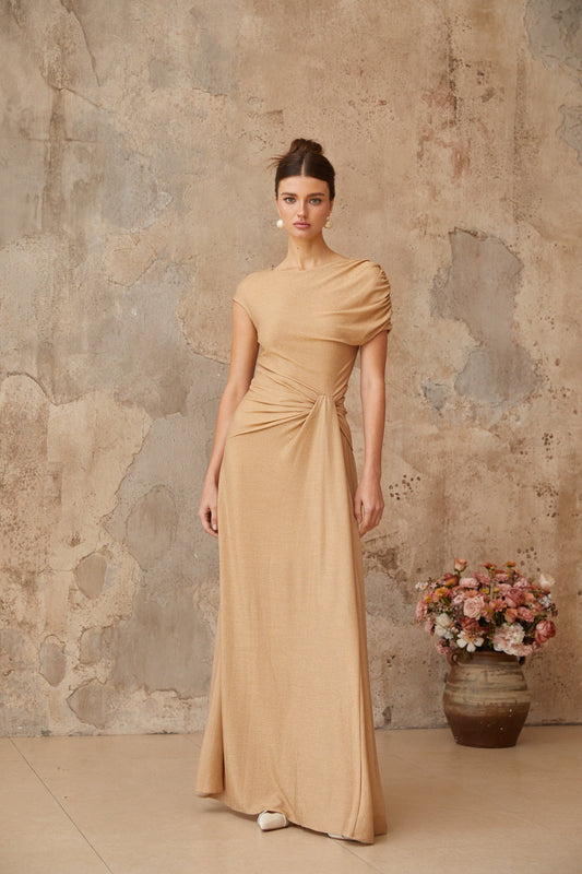 Rosalie gold asymmetrical pleated maxi dress