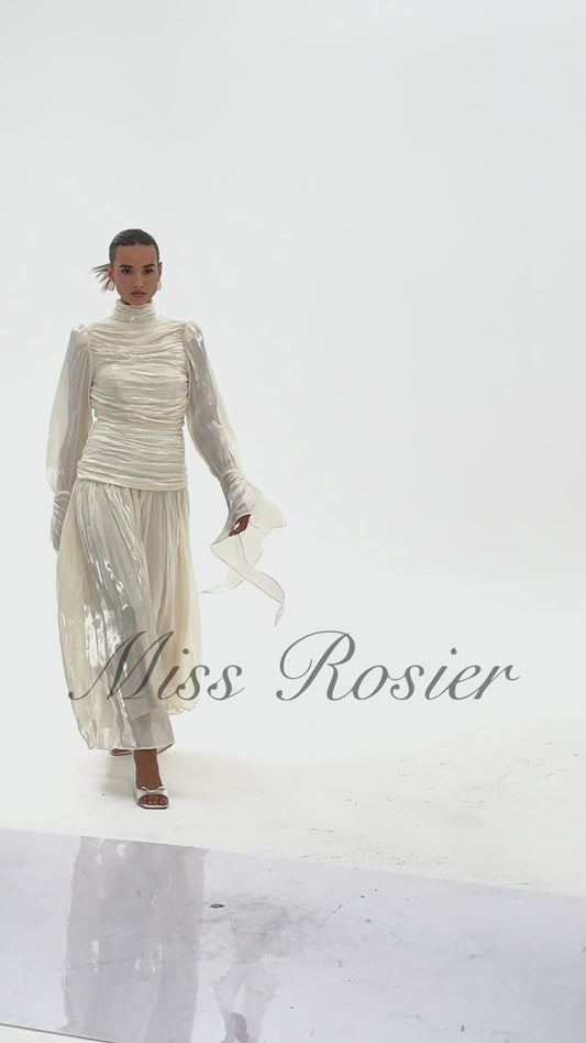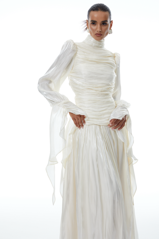 Sarolta Neutral Glossy Ruched Maxi Dress