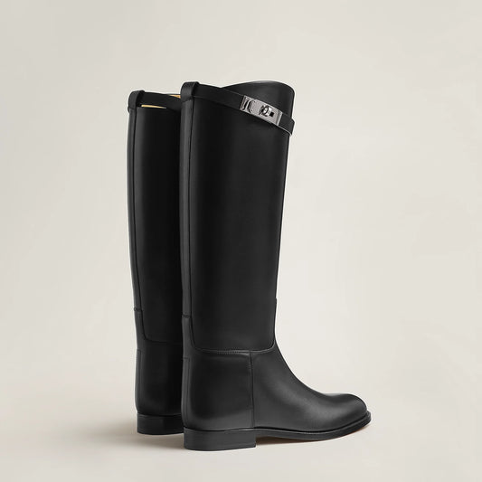 Inspired by the equestrian world and reinterpreted in a contemporary key, these soft calf leather boots combine tradition and boldness in a perfect balance of style. The clean lines and harmonious structure evoke the elegance of equestrian heritage, while the craftsmanship enhances their refinement. An iconic model, symbol of decisive femininity and timeless taste.