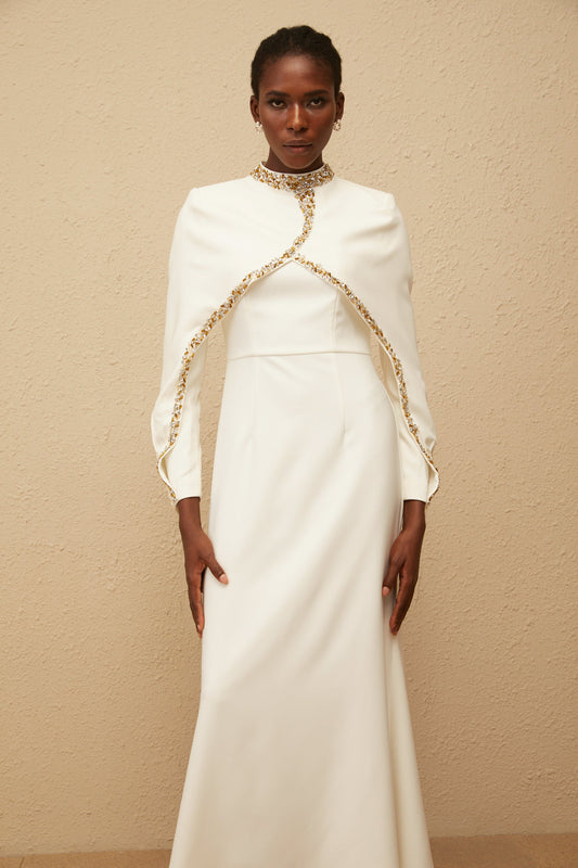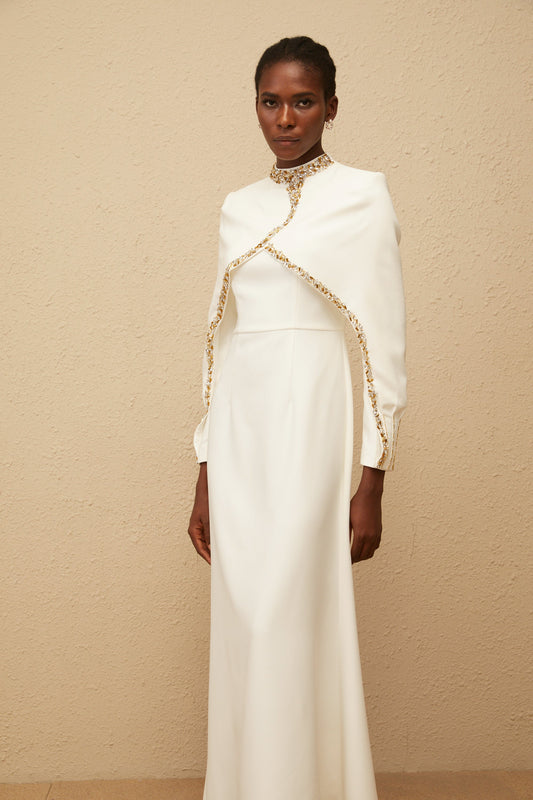 Lune White Embellished Shawl Design Gown