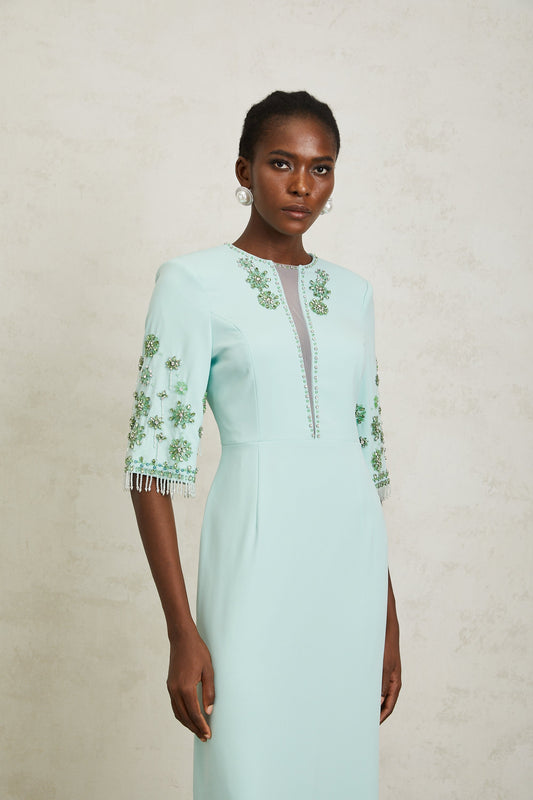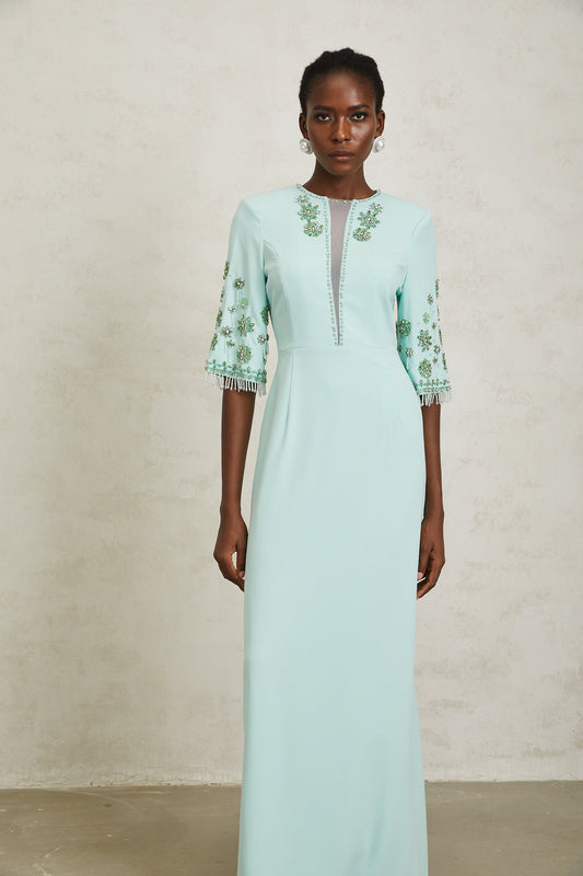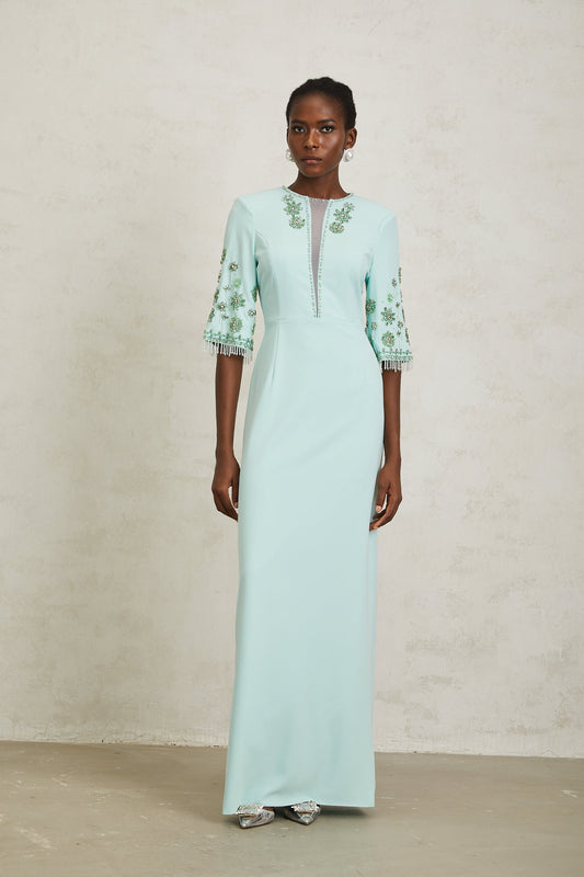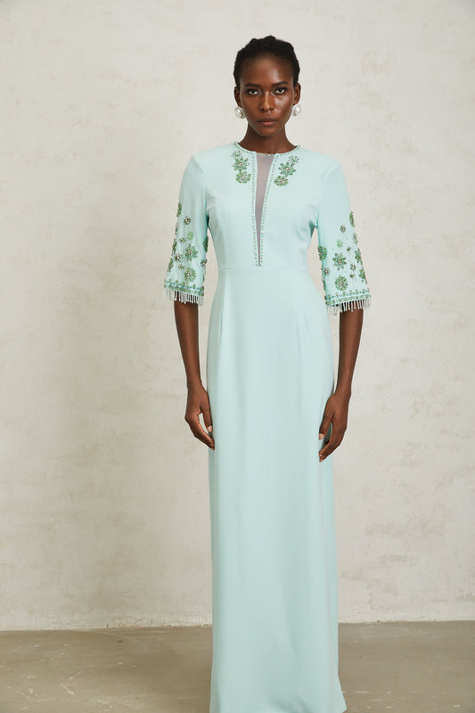 Manuela Mint Green Crystal Embellished Maxi Dress