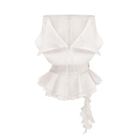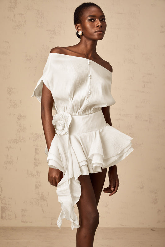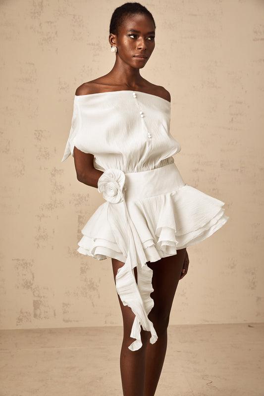 Amélie White Floral Appliqué Flounced Mini Dress