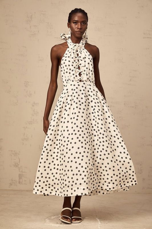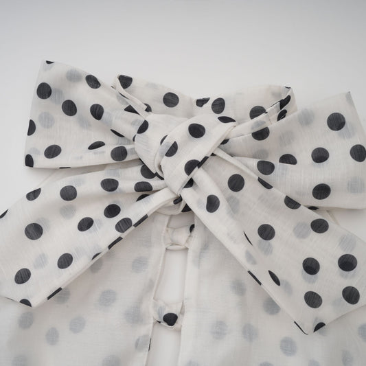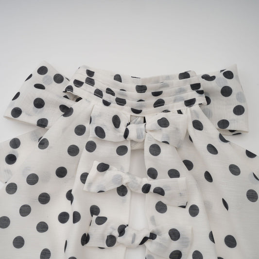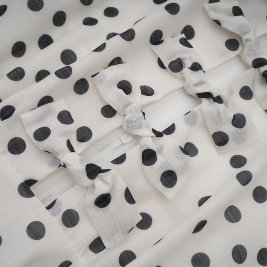 Audrey white bowknot polka-dot midi dress