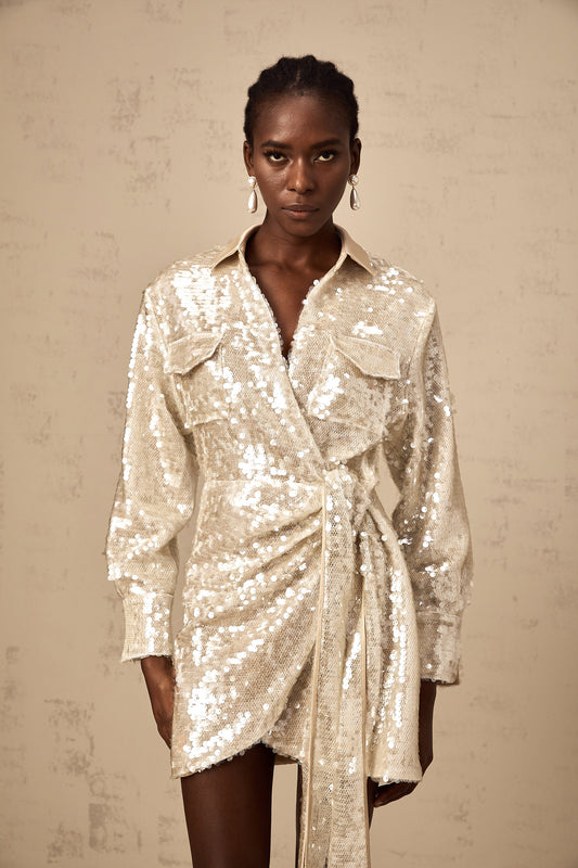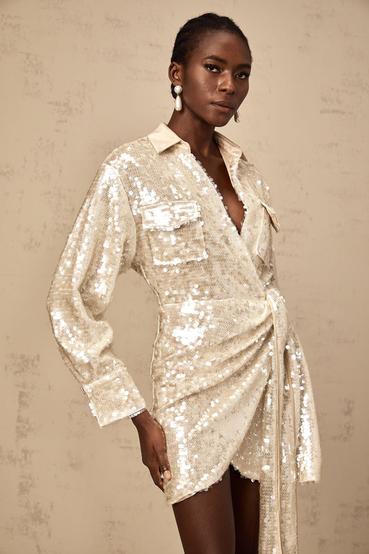 IMPORTANT NOTICE: By ordering Aurore dress, you are abiding to the fact that all sequins are handmade. The occasional shedding and breakage of a very small number of sequins is a normal phenomenon. Even high-end or luxury brands encounter this.