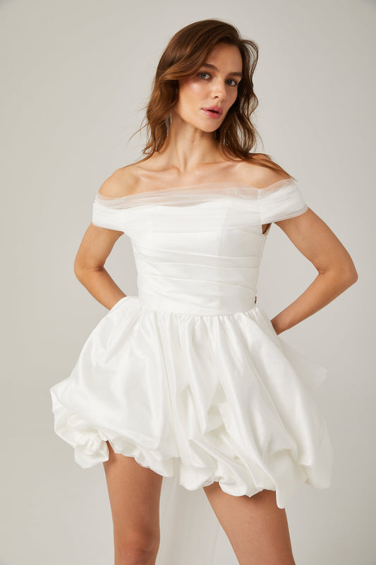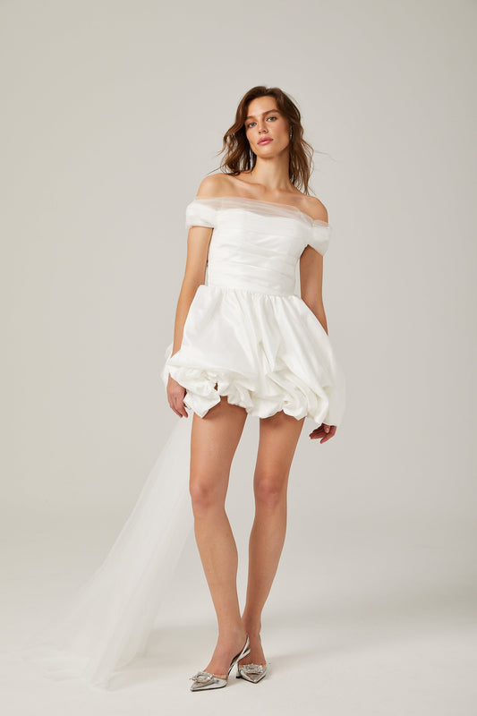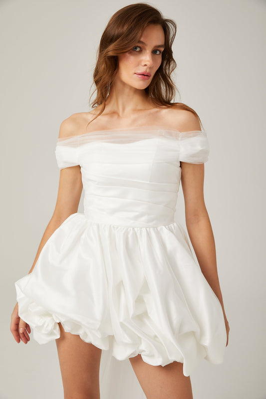 Aurore white off-shoulder bowknot mini dress (US Only)
