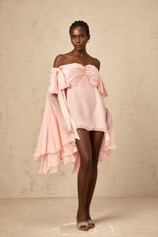Avril pink bow draped slip mini dress (US Only)