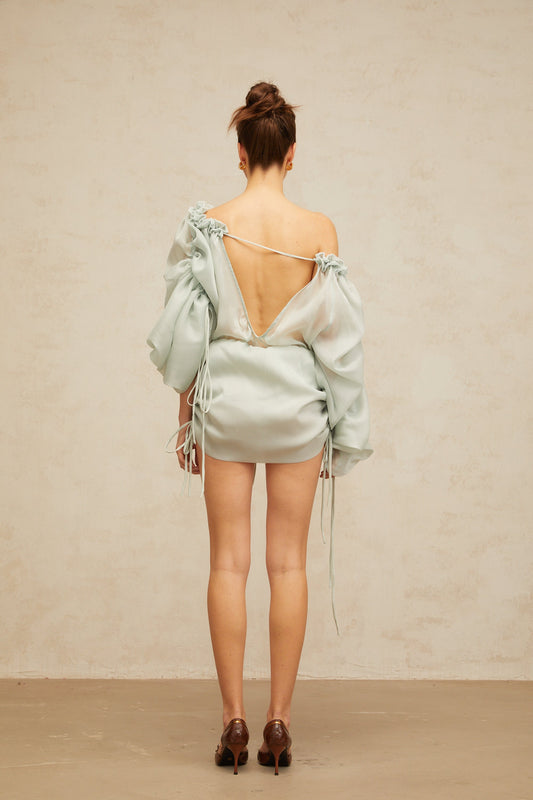 Béryl light-green ruffled-trim ruched mini dress (US Only)