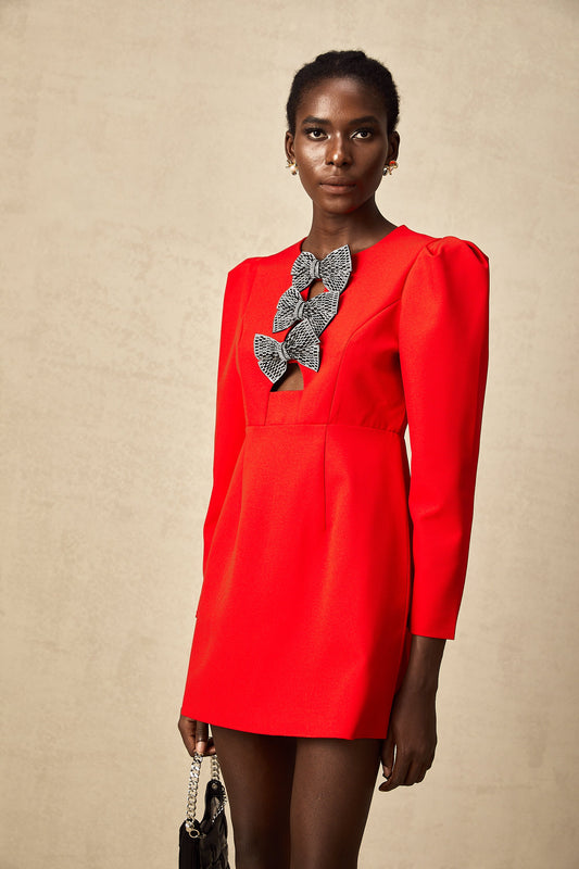 Clemence red studded-bow split mini dress (US Only)
