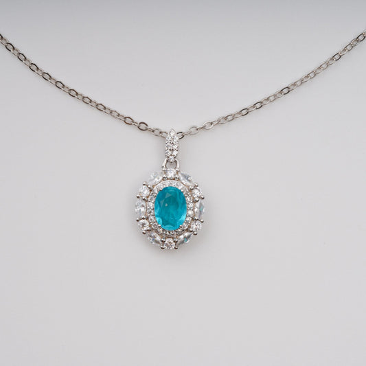 Annina Blue Oval Gemstone Pendant Sterling Silver Necklace