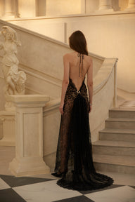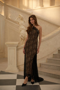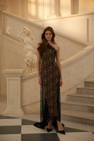 Alizée Brown Lace Panel Leopard Print Maxi Dress