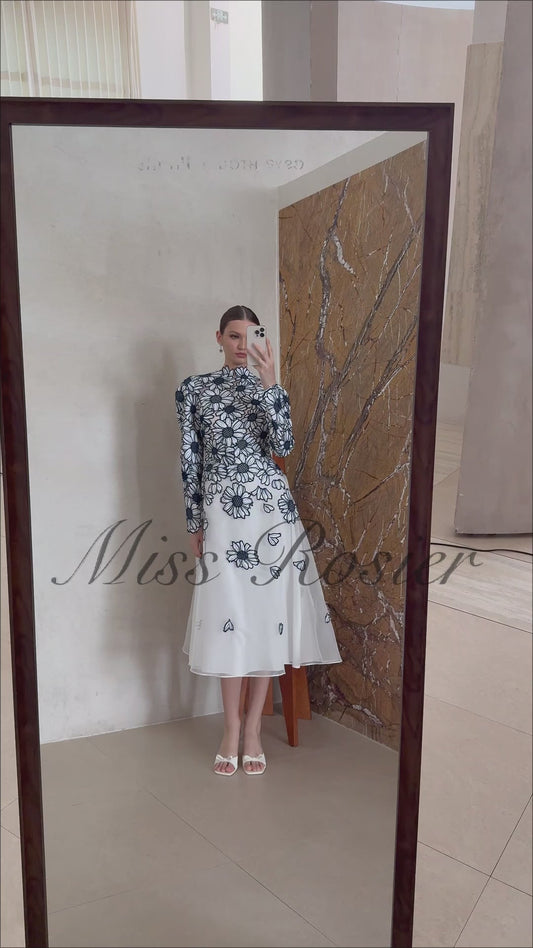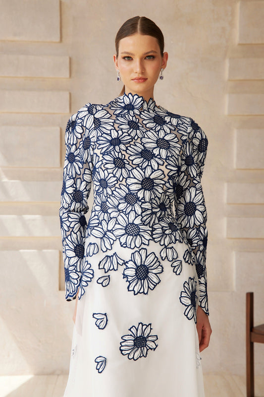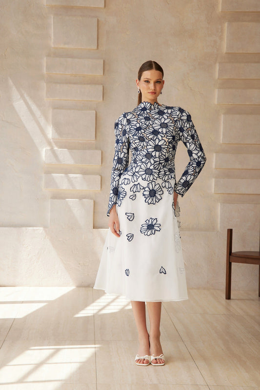 Caméo Blue Floral Embroidered Tulle Midi Dress