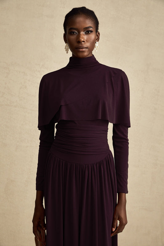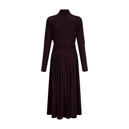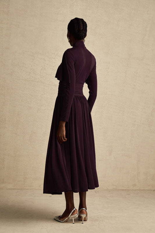 Camille Red Ruched Midi Dress with Flap Design Detail