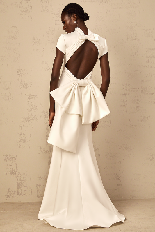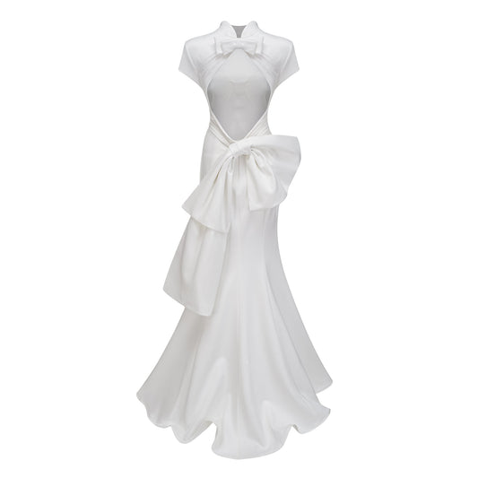 Camille White Statement Bow Mermaid Maxi Dress