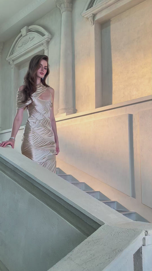 Cecilia Neutral Sea Ammonite Shirred Maxi Dress